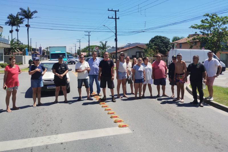 Na manhã de segunda-feira (15), moradores e comerciantes da Av. Celso Ramos protestaram contra a implementação do binário no final da avenida e vias adjacentes.