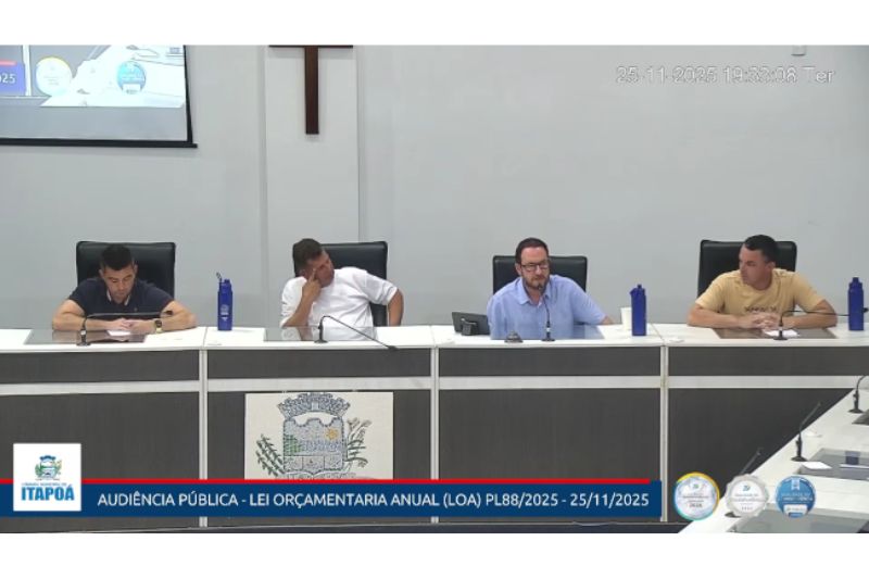 A Câmara Municipal de Itapoá promoveu, na noite de terça-feira (25), uma audiência pública para apresentar e discutir o Projeto de Lei Ordinária nº 88/2025, que define as receitas e despesas do Município para o exercício financeiro de 2026. Trata-se da Lei Orçamentária Anual (LOA), cuja estimativa total para o próximo ano é de R$375.085.514,71.