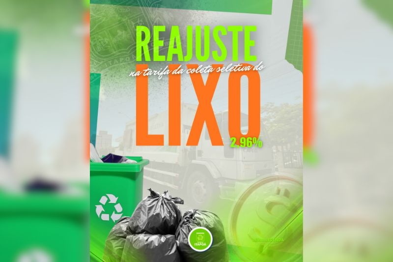 A Prefeitura de Itapoá informou que, a partir de 1º de janeiro de 2026, entrará em vigor o reajuste anual de 2,96% nas tarifas de coleta de resíduos sólidos domiciliares e limpeza urbana, serviços executados pelo SURBI (Serviço de Urbanização de Itapoá).